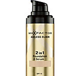 Το Ageless Elixir 2 in 1 Foundation + Serum της Max Factor είναι διαθέσιμο σε 6 αποχρώσεις: 45 warm almond, 50 natural beige, 55 beige, 60 sand, 75 golden, 80 bronze.