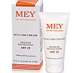 Τα αντηλιακά προϊόντα Mey με δείκτη προστασίας SPF 25 και SPF 50, προστατεύουν το δέρμα, εμποδίζουν τα ηλιακά εγκαύματα και αποτρέπουν αλλαγές στο κολλαγόνο και την ελαστίνη που προκαλούνται από τη UVA και UVB ακτινοβολία.